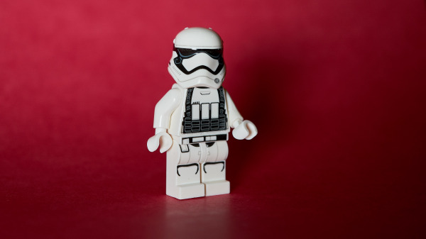 Again using a black ‘infinity’ background and a single led matrix light, this Lego storm trooper is only about 2cm tall. The macro lens was used with a narrow appature to increase the depth of field, keeping most of the figure in focus. The background colours were easily changed in post processing.